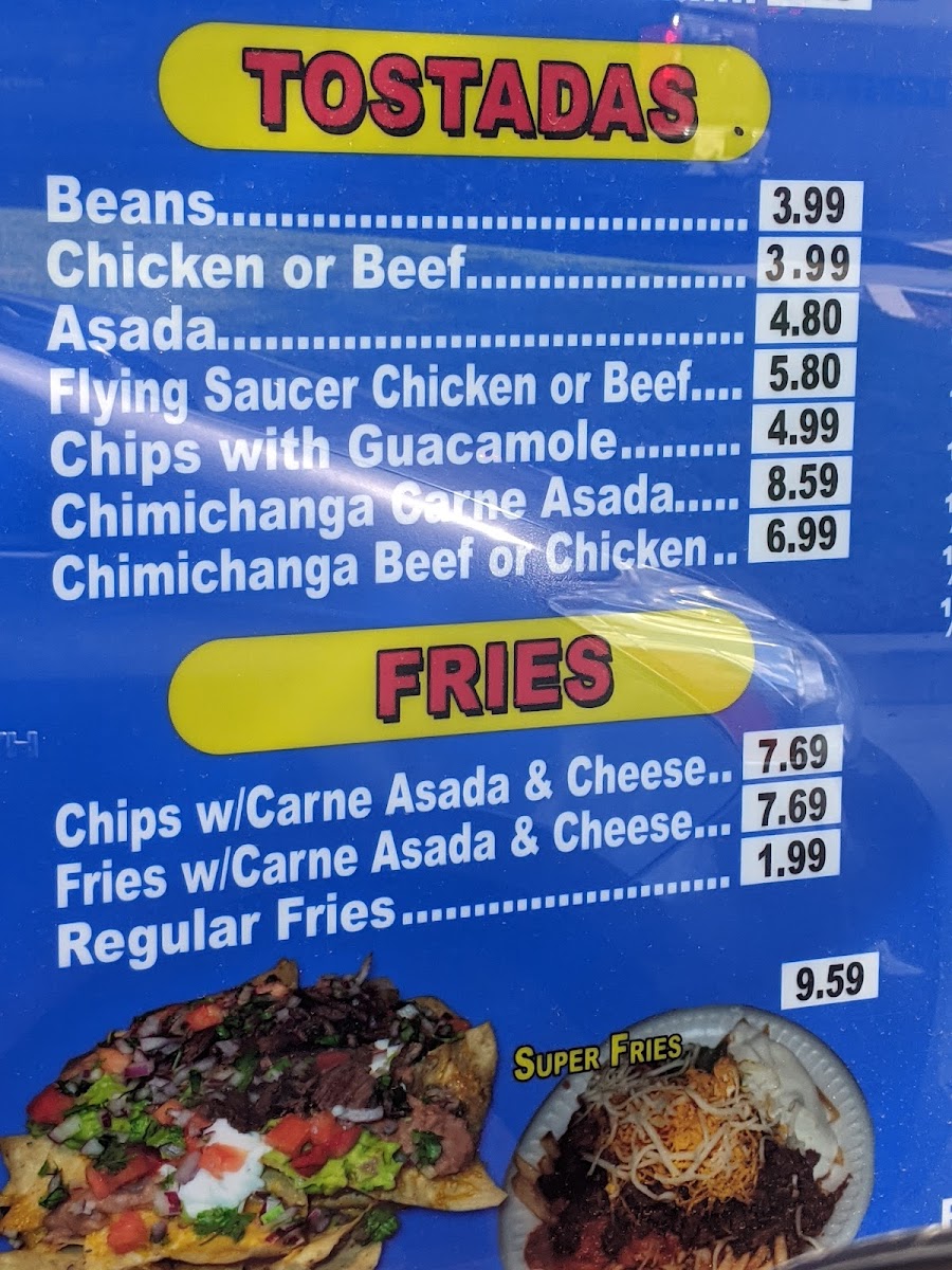 - Tostadas: Choose from flavors like Chicken, Beef, or the intriguing Flying Saucer options.